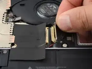 Не пытайтесь полностью снять верхнюю панель, она всё ещё подключена к ноутбуку кабелем.
