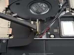 Вставьте заострённый конец лопатки под один край магнитного разъёма и подденьте, чтобы отключить его.