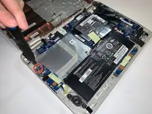 С помощью инструмента для открытия iFixit снимите нижнюю панель ноутбука.