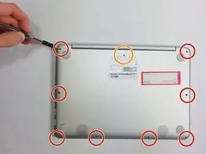 Удалите девять винтов нижней крышки с помощью отвертки T5.