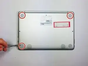 Снимите три резиновые ножки с нижней крышки с помощью пластикового или металлического инструмента.