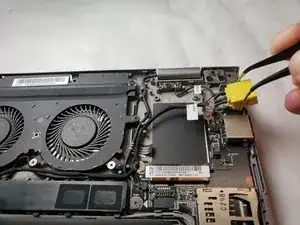 Удалите порт зарядки, выковыривая желтый порт из корпуса компьютера.