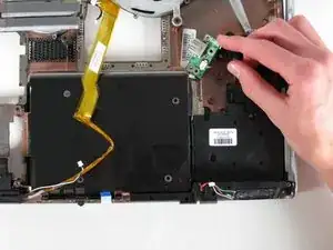 Поднимите материнскую плату вверх, пока она не освободится от нижней части корпуса, и извлеките её из ноутбука.