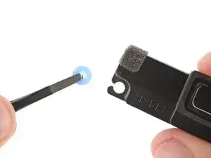 При сборке установите две втулки на их выступы и прижмите динамик вниз, чтобы он встал на место.
