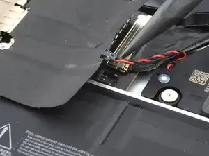 Кабель клавиатуры и тачпада соединяет верхнюю крышку с ноутбуком.