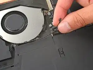 Используйте остриё пластиковой лопатки, чтобы отделить ленту от нижней части вентилятора и отвести её в сторону от кабеля динамика.