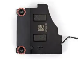С помощью отвертки Torx Plus 3IP отвинтите два винта длиной 3.2 мм, фиксирующие правый динамик.