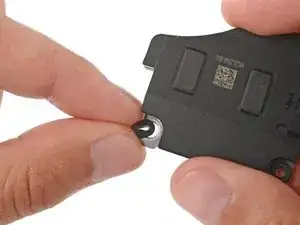 С помощью пинцета или пальцами снимите крышку разъёма батареи.