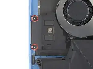 С помощью отвертки Torx Plus 3IP отвинтите два винта длиной 2.3 мм, фиксирующие крышку разъёма батареи.