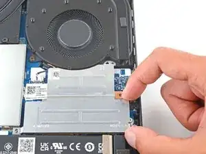 Схватите крышку SSD и поднимите её, чтобы снять.