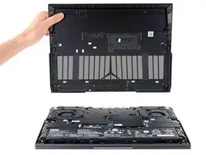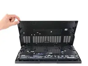 При повторной сборке это хорошая точка для включения ноутбука и проверки всех функций перед окончательным закрытием. Обязательно выключите ноутбук снова перед продолжением работы.