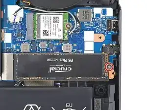 Используйте крестовую отвертку, чтобы выкрутить винт PH1, 2.6 мм, крепящий SSD к материнской плате.