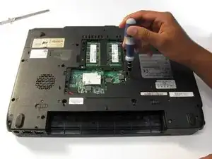 Ослабьте винт, расположенный на крышке оперативной памяти, с помощью отвертки Phillips #1.