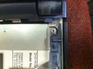 Снимите первый винт с привода DVD с помощью отвёртки с крестообразным шлицем. Местоположение винта указано на первом фото.