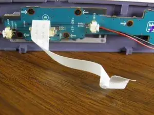 Аккуратно отсоедините ленту панели питания от материнской платы, вынув её из пластикового разъёма, при этом оставив подсоединённой к панели питания.