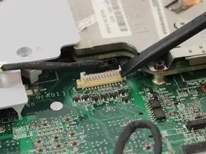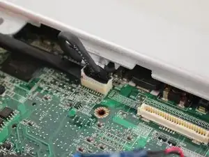 Крепко возьмитесь за синюю липкую ленту, прикреплённую к разъёму ленточного кабеля ЖК-дисплея, и потяните вверх, отрывая от материнской платы.