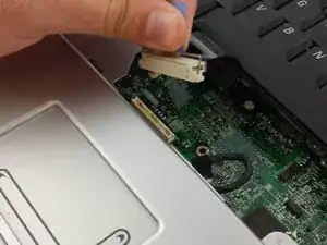 Отсоедините ленточный кабель тачпада от материнской платы с помощью лопатки.