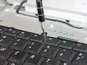 Осторожно подденьте серебристую рамку над клавиатурой и под дисплеем с помощью лопатки.