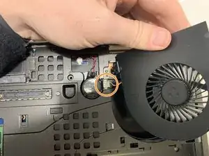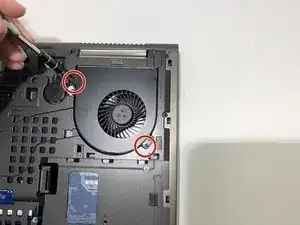 Удалите два винта 5 мм, соединяющих вентилятор с устройством, с помощью крестовой отвертки Phillips #00.