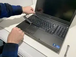 Подденьте нижний край обрамления клавиатуры от верхнего внутреннего края пластиковым монтажным инструментом или лопаткой.
