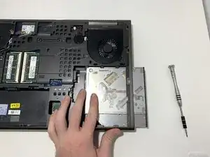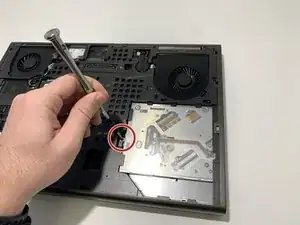 Удалите винт 3 мм, которым оптический привод крепится к компьютеру, с помощью крестовой отвертки Phillips #00.
