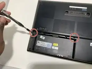 Удалите два винта 3 мм, которыми крышка нижней части корпуса крепится к компьютеру, с помощью крестовой отвертки Phillips #00.