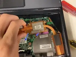 Поднимите вентилятор со стороны процессора и сдвиньте его в сторону процессора, чтобы освободить.