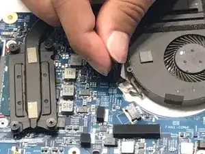 Используйте пластиковую лопатку, чтобы отсоединить кабель аккумулятора от материнской платы.