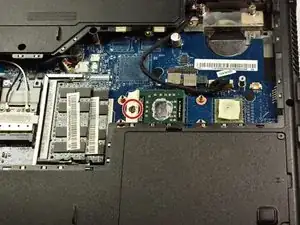 Отключите вентилятор от материнской платы, потянув за разъем, показанный на изображении.