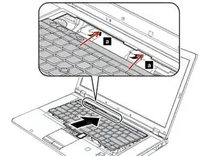 Нажмите клавиатуру вниз, затем потяните ее обратно к вашему тачпаду.