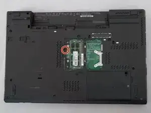 Используя отвертку Philips #00, удалите винт. Это один из двух винтов, удерживающих клавиатуру.