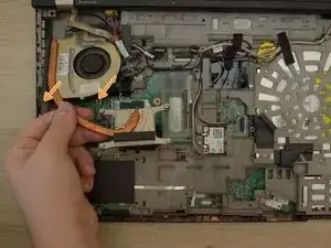 С помощью руки аккуратно отодвиньте радиатор от дисплея (в сторону тачпада) достаточно, чтобы поднять его.