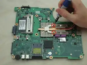 Переверните материнскую плату. Отвинтите два винта длиной 3 мм на вентиляторе крестовой отвёрткой Phillips #1.