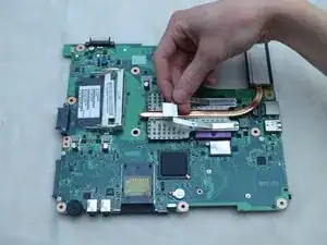 Снимите крупный разъём рядом с вентилятором.