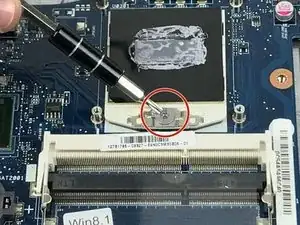 Поверните защёлку на 90 градусов с помощью отвертки Torx T8, чтобы извлечь процессор.