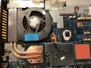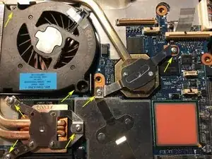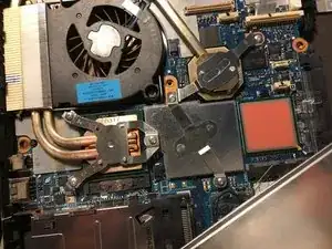 Снимите металлические скобы, удерживающие медные тепловые трубки на чипах. См. второе фото.