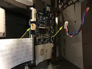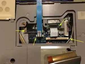 Отсоедините чёрный шлейф дисплея, аккуратно потянув его прямо вверх от материнской платы.