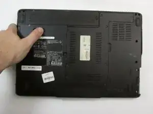 Используйте отвертку Phillips #0, чтобы удалить восемь винтов размером 3 мм с задней крышки ноутбука.