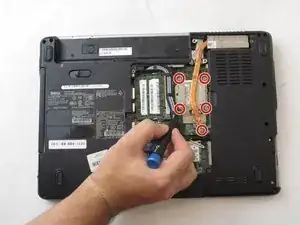 Ослабьте пять винтов Phillips #0, удерживающих радиатор.