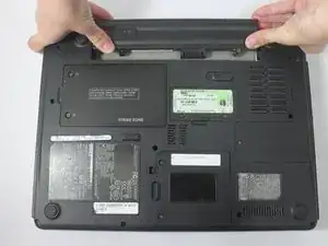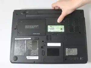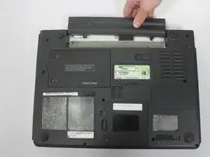 Сдвиньте аккумулятор к задней части ноутбука, пока он не освободится.