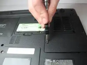 Найдите переключатель разблокировки аккумулятора на нижней части ноутбука.
