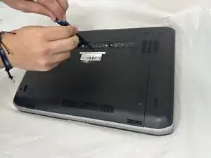 Переверните ноутбук, чтобы увидеть нижнюю часть корпуса.