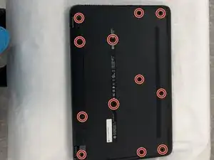 Удалите 12 видимых винтов с задней стороны, включая 4 под резиновыми ножками