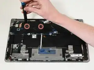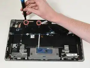 Используйте крестовую отвертку #0, чтобы отвинтить пять винтов длиной 3 мм, фиксирующих аккумулятор.
