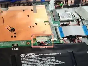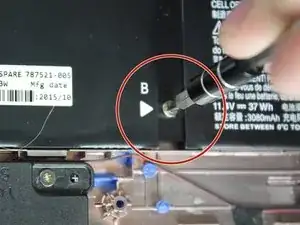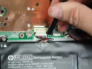 Используйте лезвие или медиатор, чтобы отсоединить кабель сборки батареи.