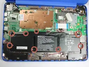 Удалите восемь (8) винтов Phillips P0 PM2.0x3.0 мм с батарейной сборки.