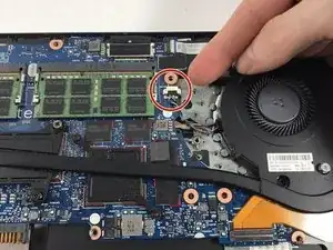 С помощью пинцета аккуратно отсоедините провод, который подключает вентилятор к материнской плате.