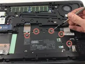 Используйте крестовую отвертку Phillips #00, чтобы вывернуть пять винтов M2.0x2 мм под батареей.