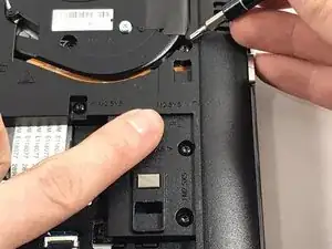 Ослабьте 2 серебристых винта Phillips на сборке вентилятора.