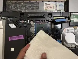 Latitude E6400 очень простой в ремонте ноутбук, у него много легко заменяемых компонентов, что позволяет быстро выполнять такие ремонты. Помните: при откручивании и нанесении пасты действуйте аккуратно и не торопитесь. Запомните: ни при каких обстоятельствах ничего не должно требоваться силой — если Вы прикладываете силу, Вы делаете что-то неправильно.